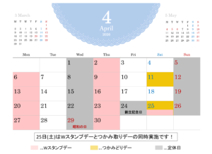 4月25日(土)はつかみ取りデー・Wスタンプデー両方実施します!