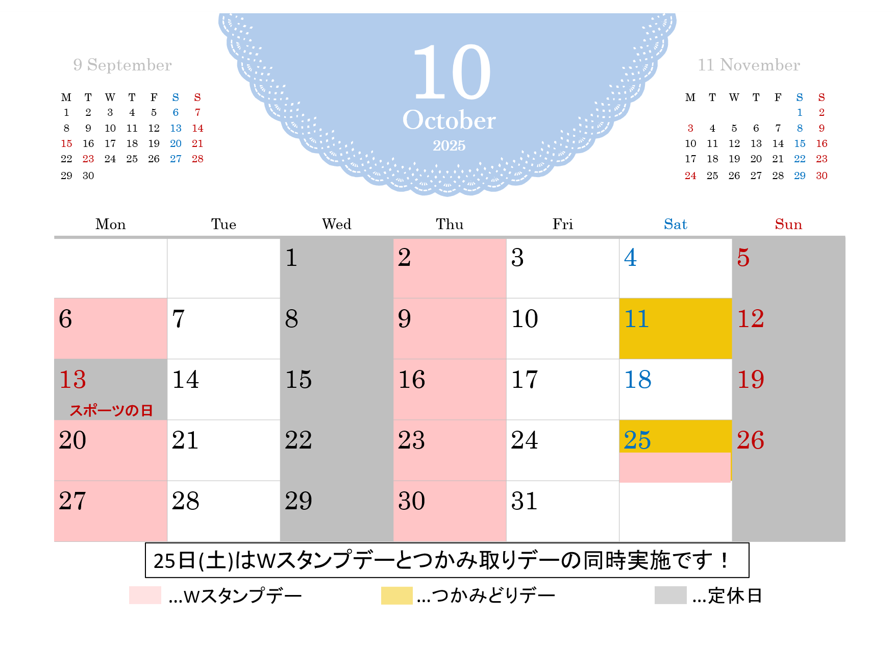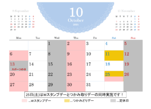 10月25日(土)はつかみ取り・Wスタンプ両方実施します!